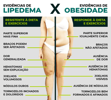 Diferente da obesidade, onde a gordura se acumula de forma generalizada pelo corpo e responde à restrição calórica e exercícios, no lipedema, a gordura se acumula de forma desproporcional e resistente , tornando o tratamento mais complexo.